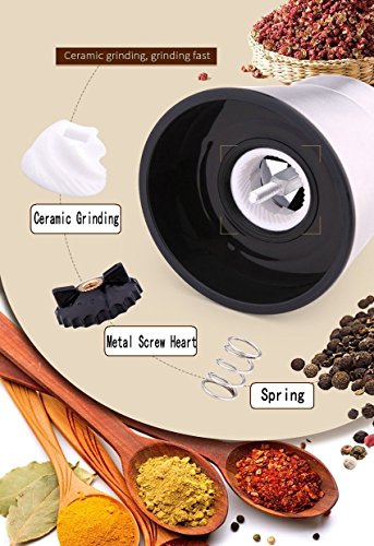 NON-CORROSIVE CERAMIC ROTOR MECHANISM, it doesn¡¯t wear out, doesn¡¯t absorb flavors allowing for use of different spices.perfect for all types of salts and peppercorns