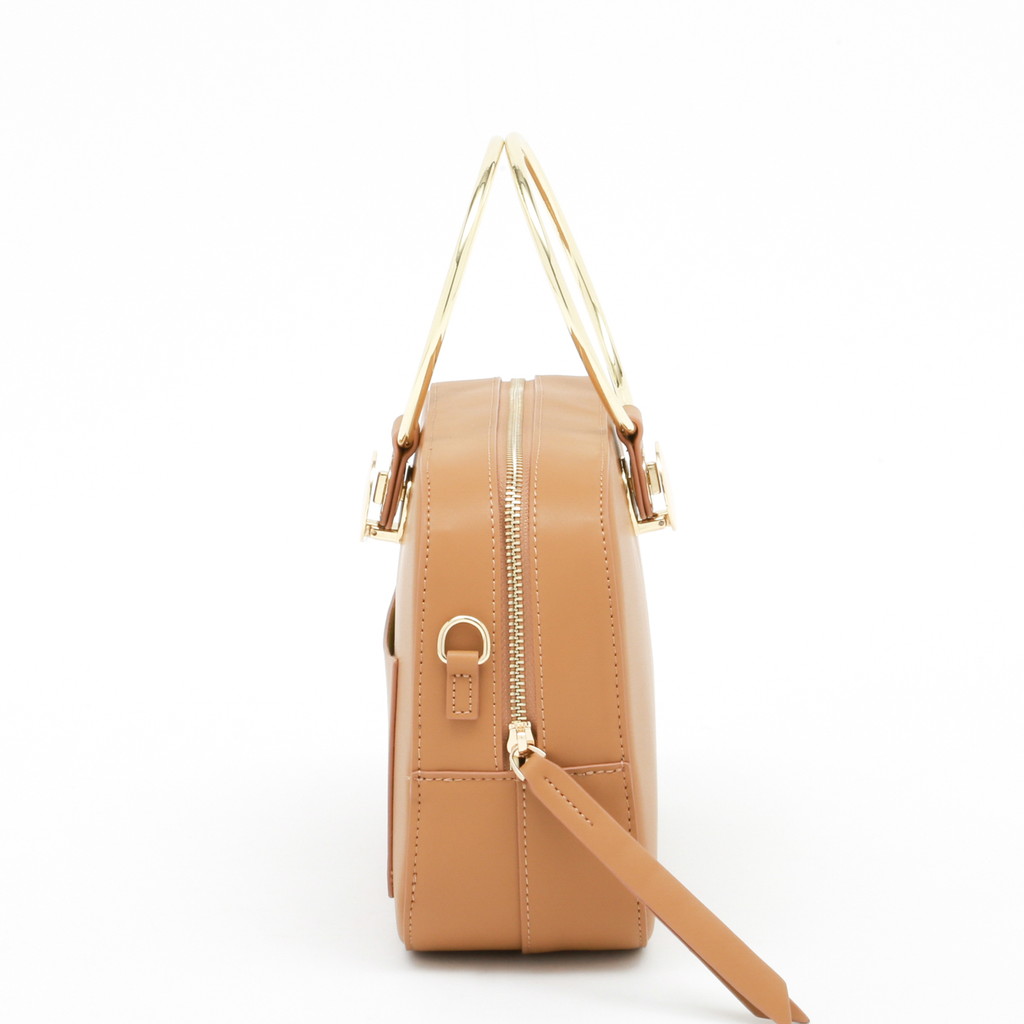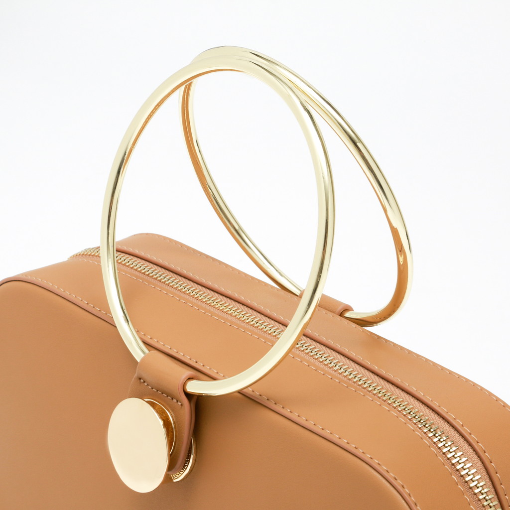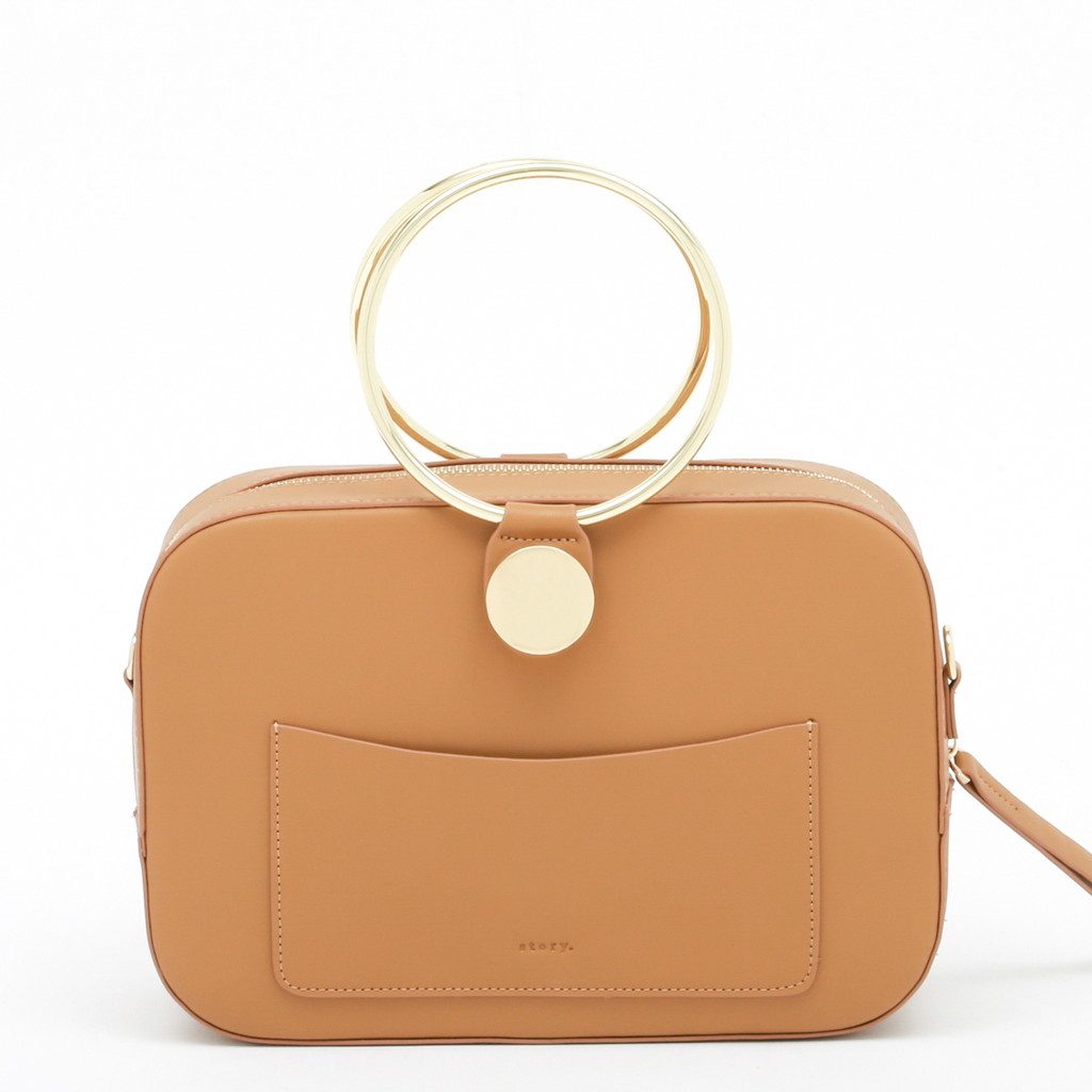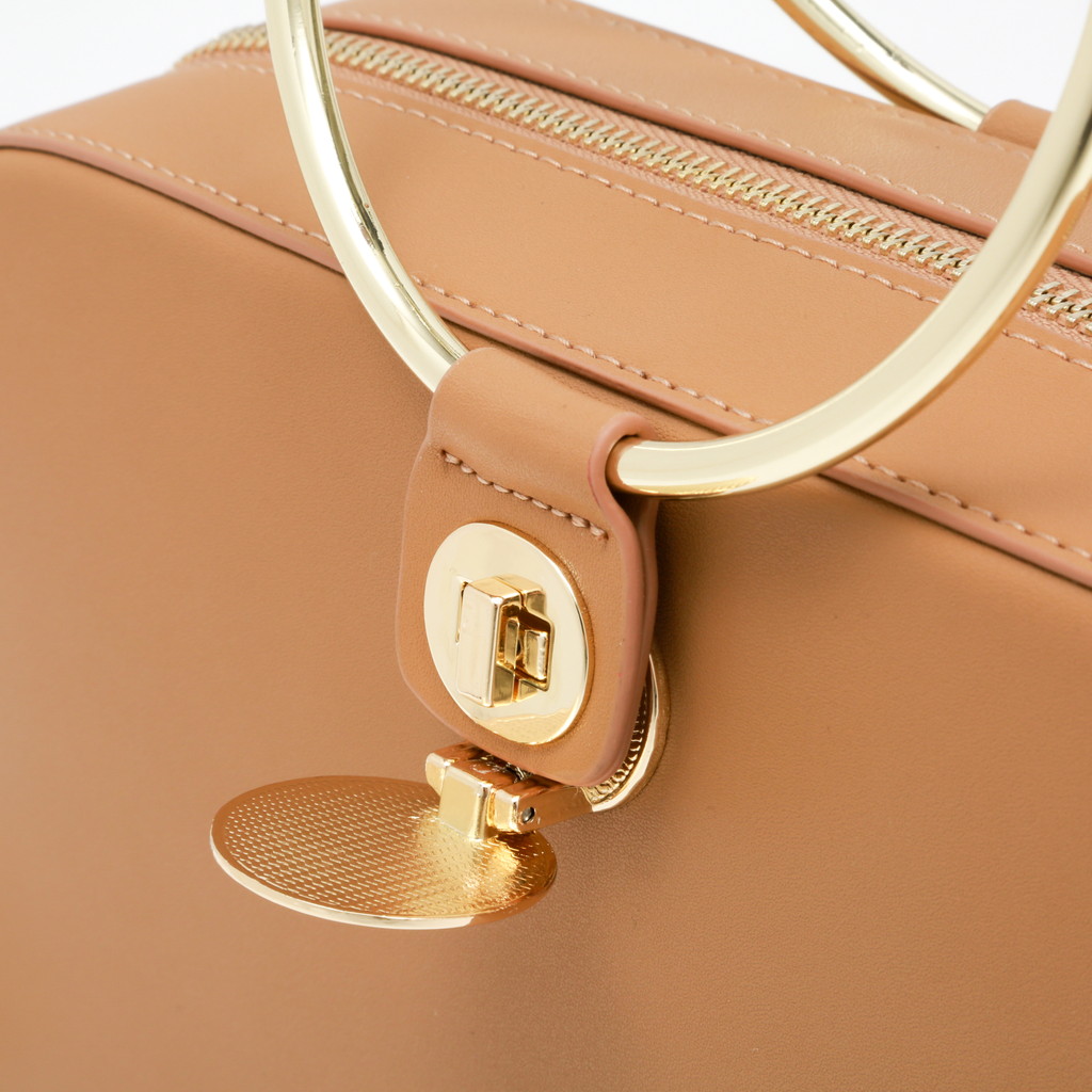 ランチボックスのような丸みを帯びた長方形のクロスボディ。大胆なリングハンドルのデザインは、付け根のターンロック金具でワンハンドルと取り換えれることが可能。さらに付属のショルダーでクロスボディとしても使っていただけます。ミニマルかつモダンな装いに3wayの実用性を備え、スタイリングのポイントとして華を添えます。