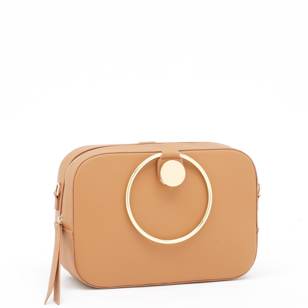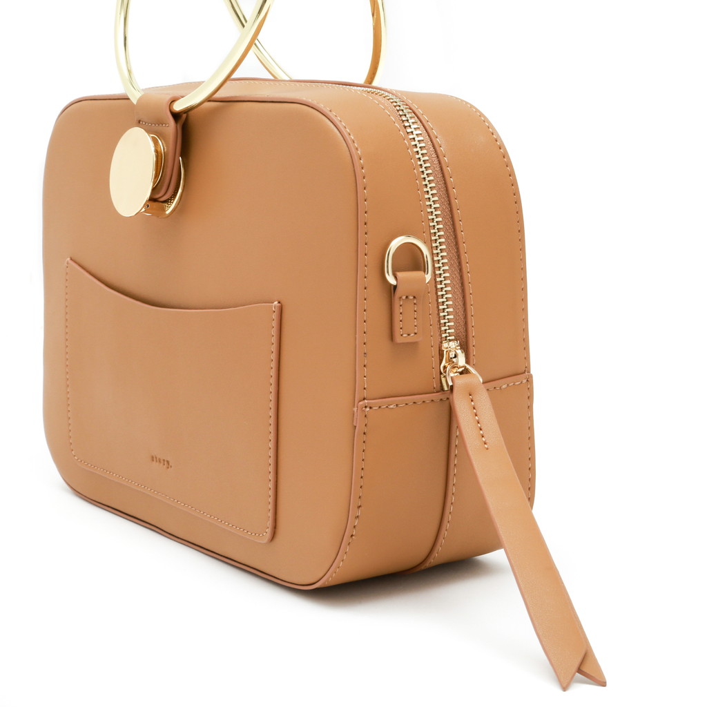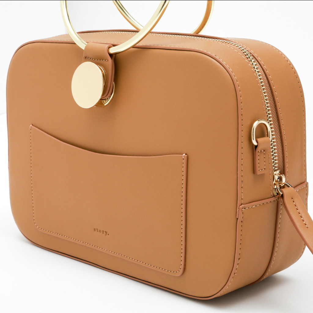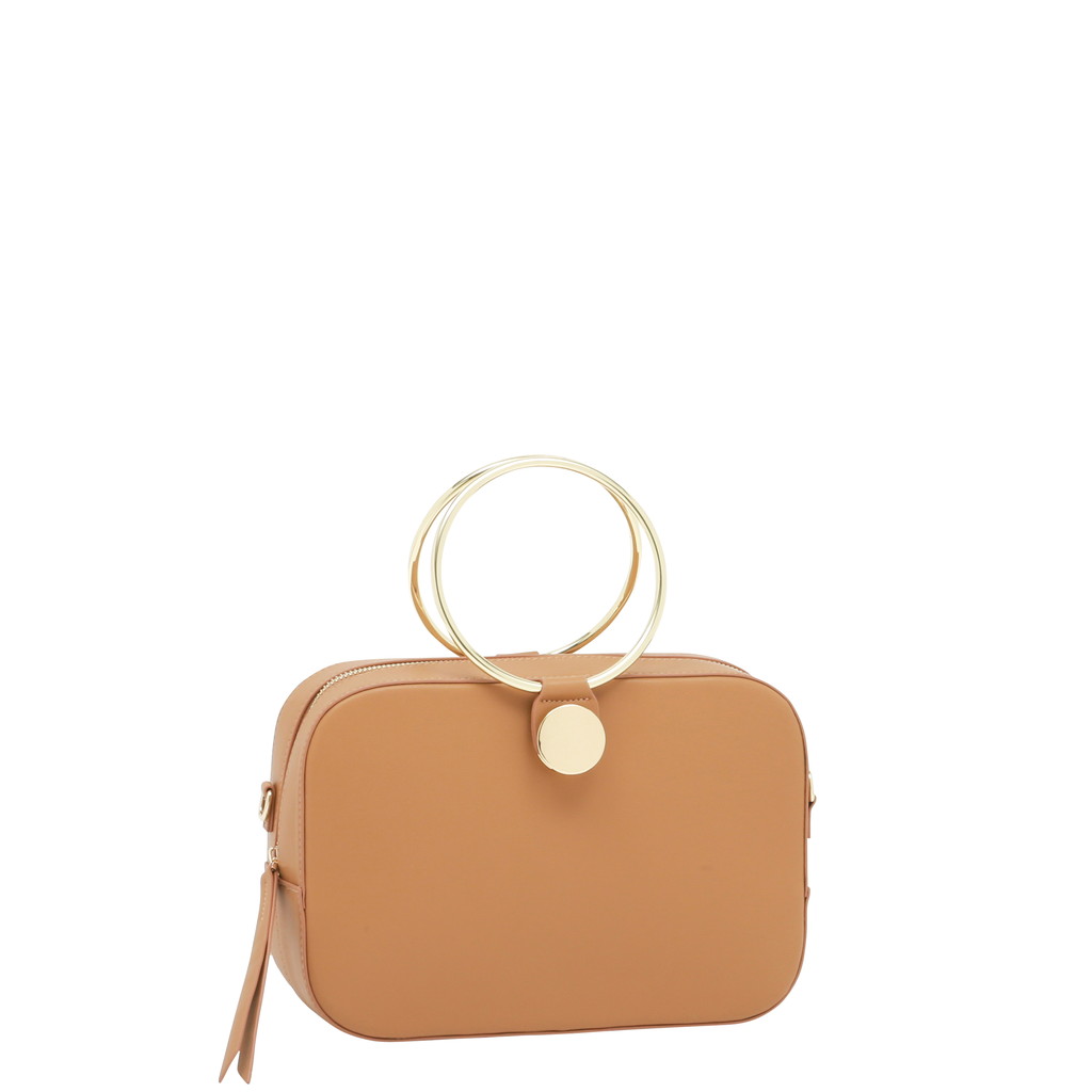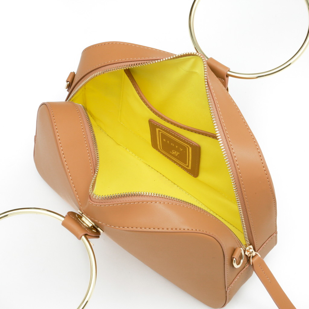 ランチボックスのような丸みを帯びた長方形のクロスボディ。大胆なリングハンドルのデザインは、付け根のターンロック金具でワンハンドルと取り換えれることが可能。さらに付属のショルダーでクロスボディとしても使っていただけます。ミニマルかつモダンな装いに3wayの実用性を備え、スタイリングのポイントとして華を添えます。