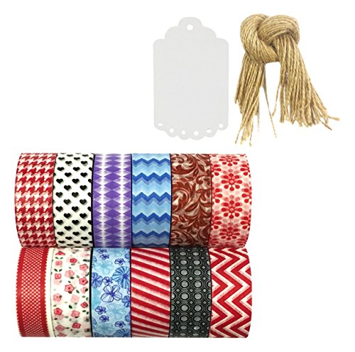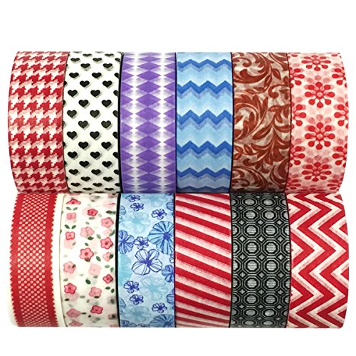Wrapables Washi Masking Tape Collection with 20 Unit Tags (Set Of 12)