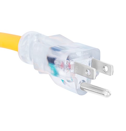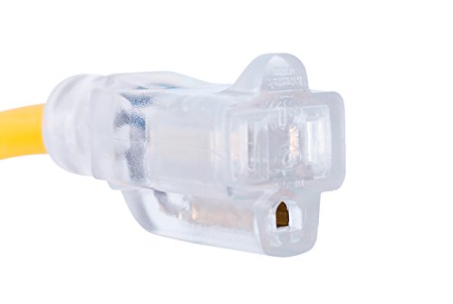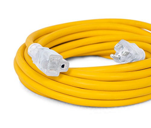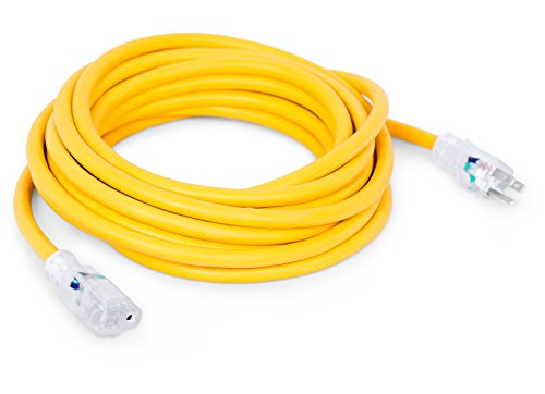 Internet's Best 25 FT Power Extension Cord with LED Lighted Plugs | 12 AWG (Gauge – 12/3) Heavy Duty Outdoor/Indoor Power Extension Cable Cord | NEMA 5-15 R & 5-15P – SJTW | Yellow