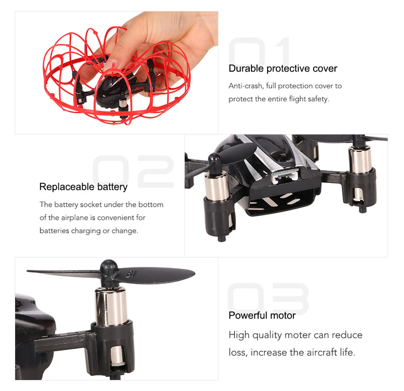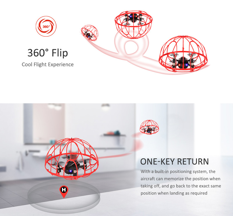 This tumbler drone with beautiful appearance is attractive and can protect the aircraft all-round. A good choice for the novice. With the headless mode, 3D flip and one key return functions, you will have a wonderful flying experience!