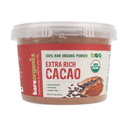Raw cacao powder is the purest form of natural chocolate. The Theobroma Cacao tree produces raw beans, which are often roasted, processed, and turned into chocolate and cocoa butter. BareOrganics Cacao Powder is made by gently cold-pressing the beans to remove some of the oil while preserving the nutritional value and rich flavor without added sugars or fillers.