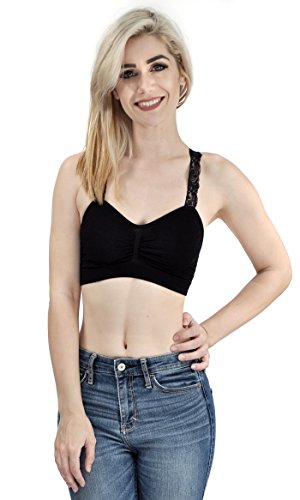 Juniors lace strap cami bra top. Ruched front, jacquard heart pattern, racer back. Seamless stretch fabric - one size fits most.