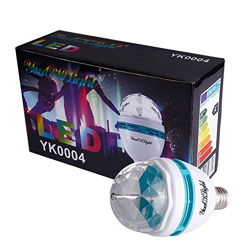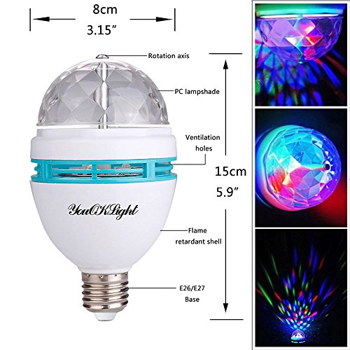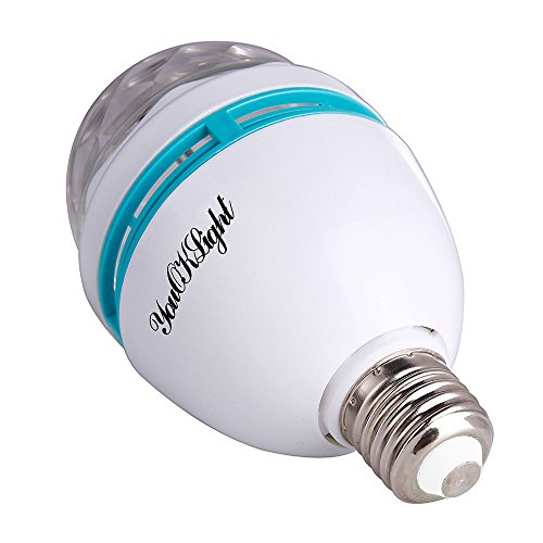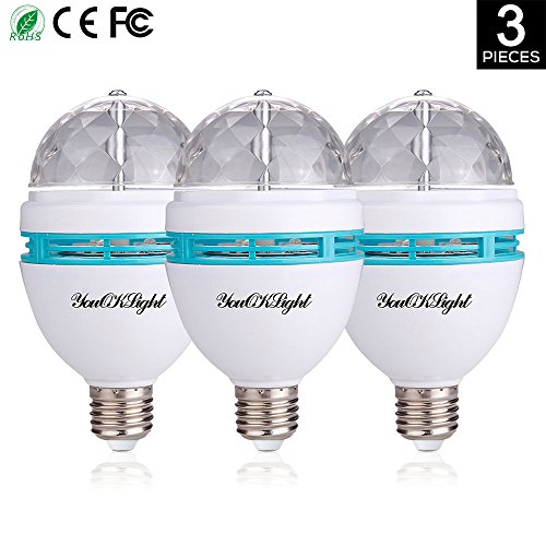 YouOKLight 3-Pack E26 Full Color Rotating Lamp LED Strobe Bulb Multi changing Color Crystal Stage Light for Disco Birthday Party Club Bar