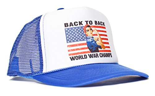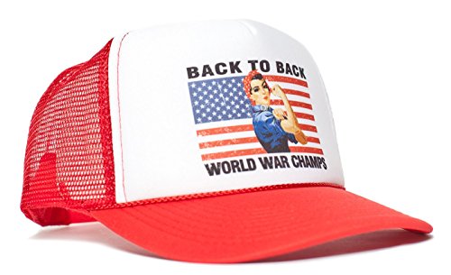 Product DescriptionHere is another funny twist, almost hilarious, Back To Back World War Champs cap with Rosie as its center piece.0