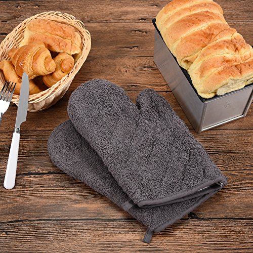 Terry Oven Mitts 7 x 13", Heat Resistant for Everyday Kitchen Gloves Basic Oven Mitts, Set of 2 by Jennice House (Grey)