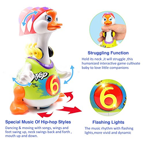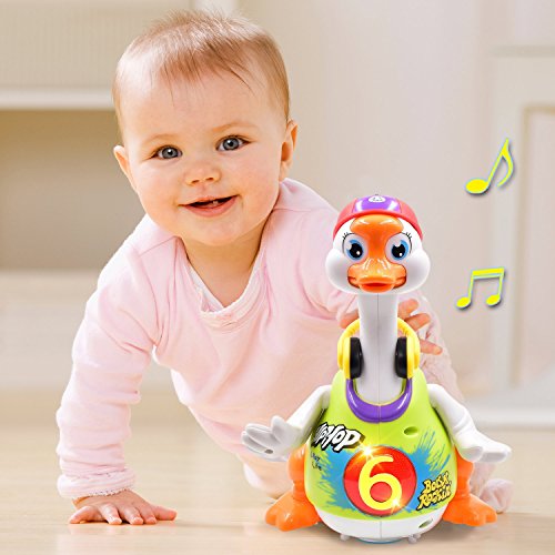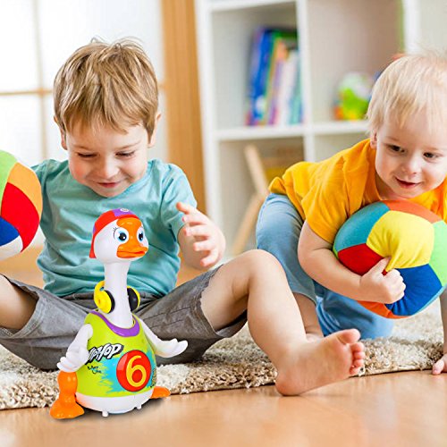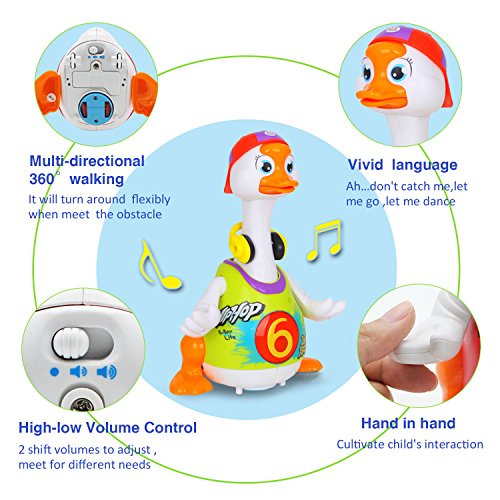 Best Choice Products is proud to present this new amusing toy duck. The duck has a button on top of its head that when pushed, it will trigger the bump and go motion within the toy, it will sing a fun sing-a-long tune, flap, and light up its wings. The music and bright colors are fun and appealing, but the toy also comes with five different buttons. One is a sound effect that imitates a duck sound, there is a song button, a melody button, a button that allows the duck to talk, and a heart button that make a warm heart thumping sound. The duck also has a little baby duckling that, if pushed it will quack like a duckling and light up it mom's wings. All of these sounds are fun to hear and sing with, but in case a silent environment is needed, the sound can be adjusted to mute, low, or regular. We purchase our products directly from the manufacturer, so you know you're getting the best prices available. NEW PRODUCT WITH FACTORY PACKAGING. FEATURES: Bump and Go Action, Wings flap and light up when music begins, Lights, Music, and Talks (Adjustable Volume), Buttons on duck imitate duck sound and sing a tune when pushed, 3AA batteries. This is such a cute toy duck!Feature