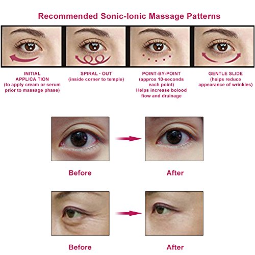 -. Feature : MAKE YOUR EYES LOOK REFRESHED AND YOUNGER --- This eye massager recreates a professional beauty treatment by combining heated with delicate pulsations, and it is perfect for skin with signs of aging such as crow's feet, fine lines, undereye bags, dark circles. Relax your mind and help you sleep better / PERFECT FREQUENCY SONIC VIBRATION --- Uses gentle vibration and warm heat to relax and soothe the eyes, warmth to touch the skin, make the eyes more comfortable. Best gift to your family, friends, colleague and so on / CONSTANT TEMPERATURE --- Comfortable thermal care massage head maintains heat between 39°C to 42°C. Open the pores and refresh skin, keeping skin firm, glossy and elastic / NEGATIVE ION FUNCTION --- Iontophoresis promote skin care scream/gel/lotion essence penetrating into skin basal layer, activate skin cells and remove fine lines and wrinkles / 100% SATISFACTION GUARANTEED --- We are absolutely certain you will not regret your purchase. 100% guaranteed! You have a full year to return your eye massager if it does not meet your expectations!
