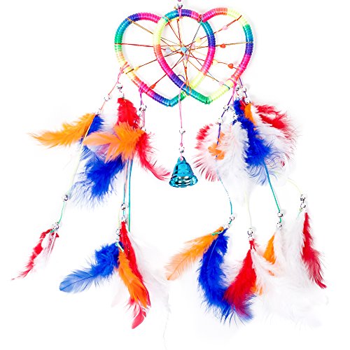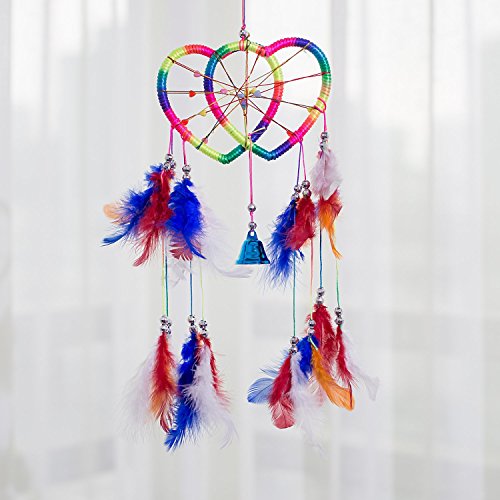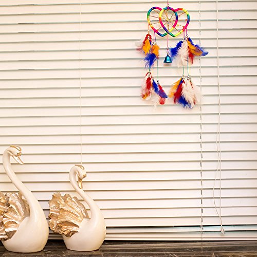 Sikolyn Heart Shape Natural Feathers Dreamcather(Multicolour)For Car Hanging Wall Deco Valentine's Day Gift