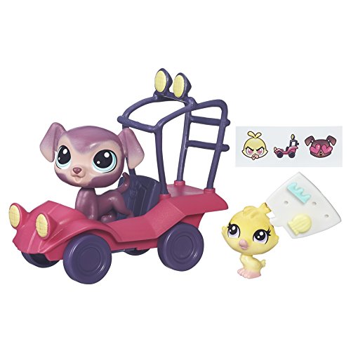- Includes pet, pet friend, dune buggy, emoji bubble, 2 Deco Bits pieces, and sticker sheet.