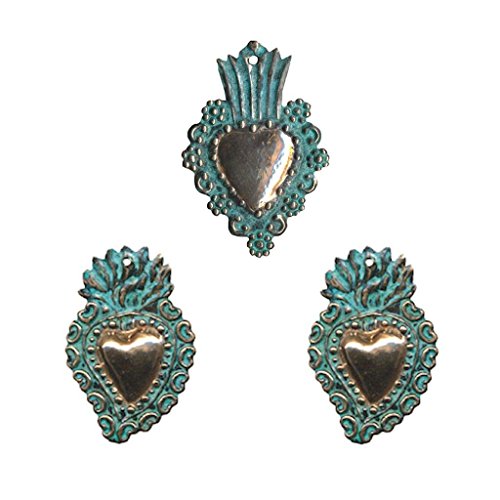 Peruvian Heart Religious Milagros Copper Patina Finish, 2"-4" Size, Set of 3
