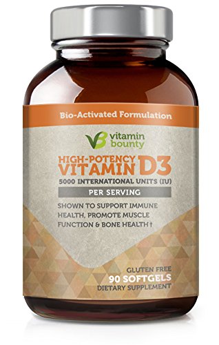 -. Feature : Introducing Vitamin Bounty Vitamin D3, the industry's highest-quality D3 supplement / Shown to help improve your immune function* / Promotes a healthier lifestyle through providing immune support, promoting healthy muscle function, and better bone health.* / Vitamin Bounty's D3 is made in the USA, in and FDA certified lab. This product is non-GMO and gluten free, with no artificial ingredients. / *These statements have not been evaluated by the Food and Drug Administration. This product is not intended to diagnose, treat, cure, or prevent any disease.