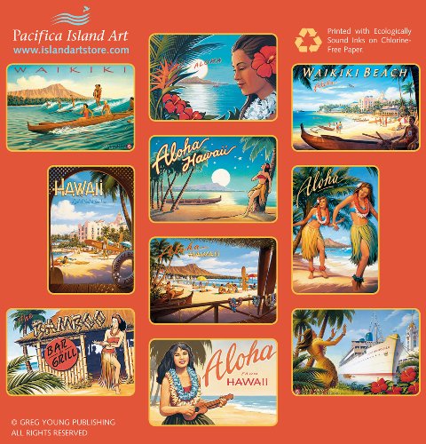 -. Feature : 10 Postcards with Hawaiian Vintage inspired looks. / Packaged in a attractive box. / P.R.Inted on Heavyweight, Chlorine-Free 100% Plantation-Grown Pulp Paper / Each Postcard measures 3.9 x 5.8 inches with Die-Cut Round Corners and a Satin Matte Finish. / Superb Quality by Pacifica Island Art of Maui, Hawaii