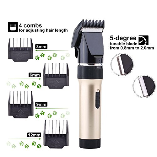 - ALL-IN-ONE VALUE SET - 1 x Pet clipper, 1 x battery, 1 x Charger, 1 x Blades, 4 x Limit Combs (3-6-9-12mm), 1 x User manual, 1 x Cleaning Brush, 1 x Lubricating Oil. Besides, please clean and maintain the clippers according to User Manual.