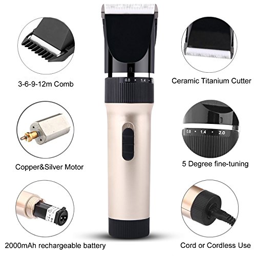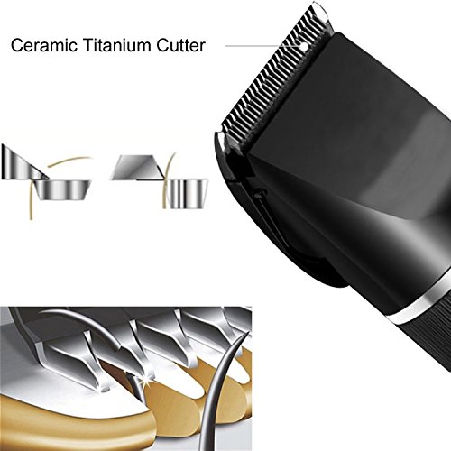 - SAFE & USER FRIENDLY - Ceramic Cutter with acute angle, sharp and wear-resisting, skin-friendly fixed titanium blade. 5-speed fine-tuning for the blade, offering five level of length (0.8-2.0mm)for precise adjustment on hair length. With 4 attachment guide combs (3-6-9-12mm), easier and safer to operate even for new user.