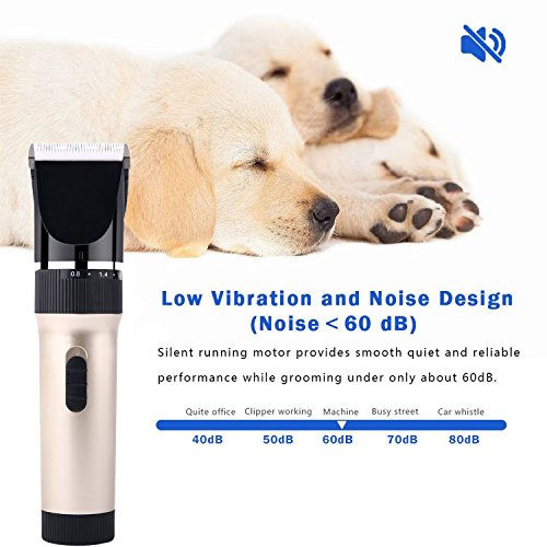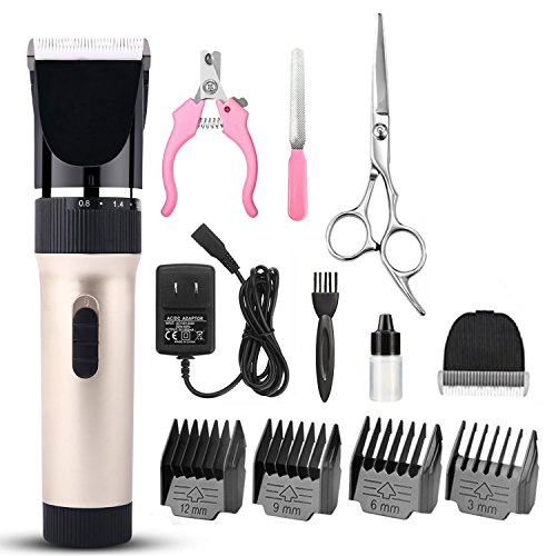 ZRYun Dog Grooming Clipper - Cordless Qiuet Pet Grooming Kit, Rechargeable Pet Hair Clipper with Comb Guide Scissors Nail Kits, Professional Dog Trimmer