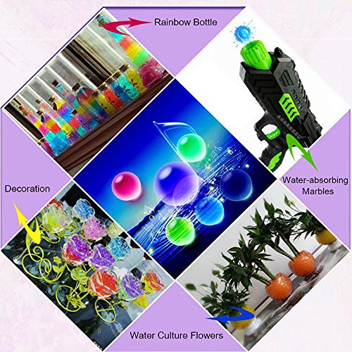 1.Promotes Learning:Helps kids with color recognition,counting fine motor skill and language development.Parents,teachers,and therapists love these beads for home clinical use. 2.Special Gift:You can give a child better gift.These beads will surely keep them busy for hours while making them smile. 3.Decorations:Try using water beads for your decorations.Use them in vases,bowls,and jars for eye appeal.They are great for centerpieces for weddings and other events.The water beads really add a wow factor that can turn ordinary vases and bowls into something beautiful. 4.Watering Plants£ºWater beads for plants water beads are also great to use with plants£¬help plants retain water and reduce the amount of watering plants need,release the water gradually so the plant isn't flooded with water.The water beads can also act as a replacement for soil with some plants,Bamboo plants do well with water beads rather than soil. 5.Longevity environmental protection:Crystal mud mosquito-free,no sewage,no smell; non-toxic,health,environmental protection.Crystal mud can repeatedly absorb and release moisture, can continue to provide plants with 2-5 years of nutrients,trace elements and fungicides.
