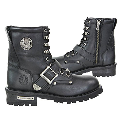-. Brand : Vulcan -. Color : Black -. Department : unisex-adult -. Feature : Material: Genuine Leather / Color: Black / Smartmask Insoles - Constructed using a special blend of Polyurethane designed to provide extra cushion were needed and superior shock absorption / Plush cushioned interior for a more comfortable fit / Heat-resistant, Non-skid, and non-marking bottom outsole -. Label : Vulcan -. Manufacturer : Vulcan -. MPN : V-117-Mens-Boot-9474704 -. PackageQuantity : 1 -. PartNumber : V-117-Mens-Boot-9474704 -. ProductGroup : Automotive Parts and Accessories -. ProductTypeName : POWERSPORTS_RIDING_SHOES -. Publisher : Vulcan -. Studio : Vulcan -. Title : Vulcan V-117 Mens Rage Motorcycle Boots