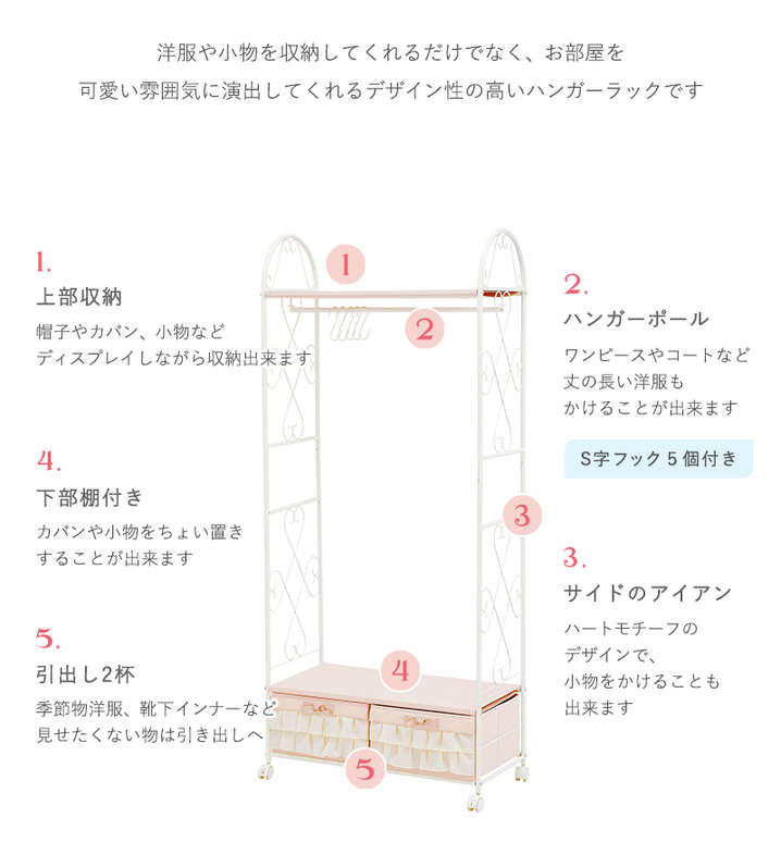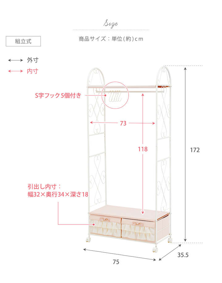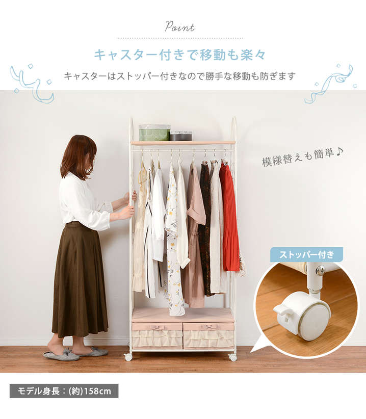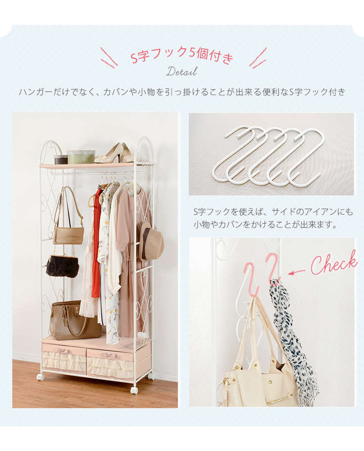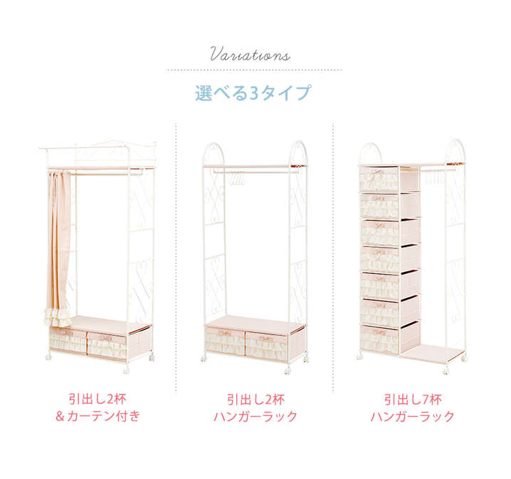 ●フリルが可愛い乙女心をくすぐるエレガントなコートラック。引き出し2杯付き。