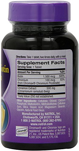 Studio : Natrol Publisher : Natrol Binding : Health and Beauty Product Description Natrol Cinnamon Biotin Chromium provides a powerful, triple action formula of Cinnamon, Biotin and Chromium Picolinate to support sugar, protein and fat metabolism and help maintain healthy blood sugar levels already in the normal range. Cinnamon extract also exhibits protective antioxidant capacity. 100% Vegetarian. 0