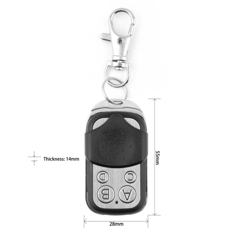 | Features: With this remote cloner you can clone all 433.92MHz fixed code key fobs. Some remotes that use this frequency are listed below. This is not a complete list! If your remote uses the 433.92MHZ frequency it will work with the remote duplicator (note: rolling code remotes will not work) Specifications: Operating frequency: 433.92MHz Size: 55mm x 28mm x 14mm Distance: Up to 100 meters Powered by 27A 12V battery (Not included) Weight:23g Package Weight:33g Package included: 3Remote Control |