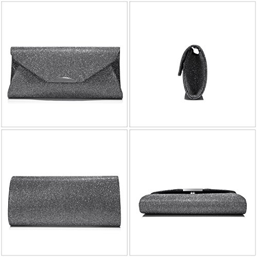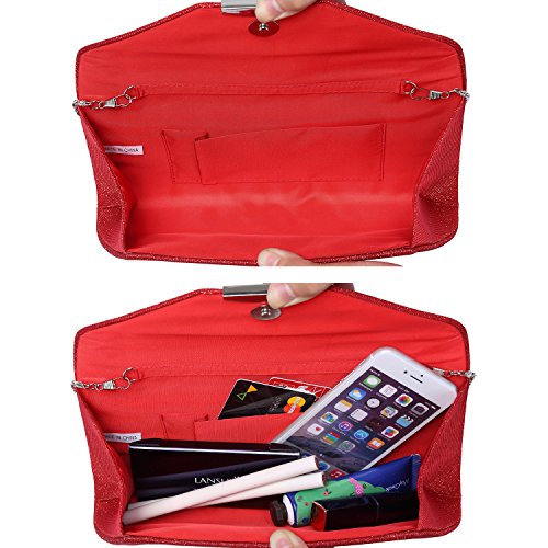 Features? 1.Priced affordable, presented nicely. This fabulous clutch purse is exactly what you need for the perfect night out. It will become a versatile and a very useful part of your party / cocktail / evening / weddings / prom outfit. Different colors to match different outfits. The handbag is covered with glitter fabric. It has a convenient flap closure which allows you to open and close your clutch conveniently and provides extra security for your belongings. 2.All metal parts are high quality. The evening clutch comes with an removable shoulder chain strap. It gives you a choice to toss your purse over the shoulder and free your hands. Otherwise tuck the chain into the clutch and keep this shiny little purse in your hands. Small and neat by sight the hard case is spacious enough to keep your essentials: a cell phone, home and car keys, ID card, credit cards, some money and make-up. Product Information Brand:LOVEVOOK - Pursuit for Fashion,Offers Young Girls and Women with Stylish and Affordable Handbag Purse. Gender: Women and Girls? Material: Shiny Fabric Material Color Selection: Black/ Blue/ Red/ Silver/ Gray Closure Type: Snap Button closure Occasion: Weddings/ Prom/ Party/Cocktail / Banquet Style: Elegant and Stylish? Maintenance Tips 1.When stained with dirt, please wipe gently with a damp cloth and dry it in shade.? 2.Little smell is normal, keep it airing out for few days, the smell will disappear. 3.Please confirm the size according to our description instead of the product image. 4.The bag color may vary slightly from the online image due to monitor color settings.
