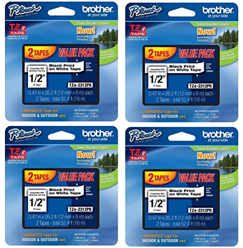 -. Feature : Quantity 4 of TZe2312PK, total 8 tapes of TZe231 / Black writing on laminated white tape / Black P.R.Int on white tape / 0.47 inch x 26.2ft (12mm x 8m)