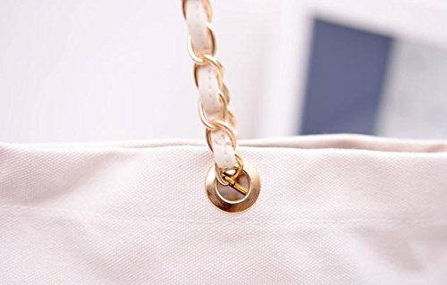 -. Feature : シンプルで大きめのトートバッグ! / 金具と皮ひものショルダーチェーンがアクセントに! / ちょっとしたお出かけにピッタリです! / 横:43㎝ 縦:32㎝ 厚さ:6㎝ / 素材:帆布