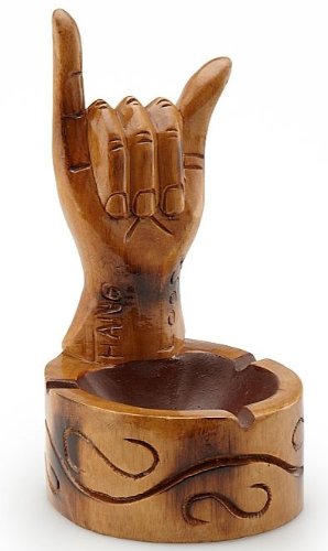 -. Feature : Ashtray measures 4 inch by 8 inch. / Hang Loose carved on the side to make it a really special souvenir. / Made of acacia wood.