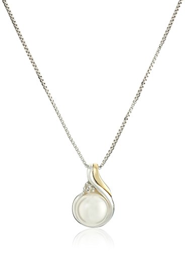 -. Feature : sterling silver and 14k yellow gold jewel set featuring freshwater pearl and diamond accents / Box chain with spring ring 18" / post with friction back / The natural properties and process of pearl formation define the unique beauty of each pearl. The image may show slight differences in texture, color, size, and shape. / Great for everyday wear. / Imported