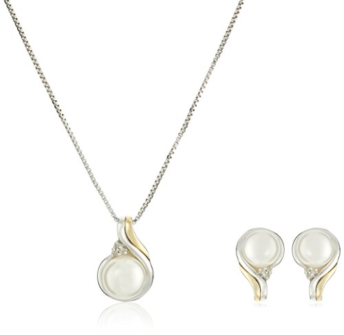 -. Title : Sterling Silver, 14k Yellow Gold, Freshwater Cultured Pearl and Diamond Accent Jewelry Set