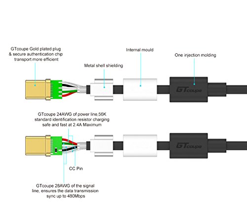 Gtcoupe USB 2.0 Type C (USB-C) to Type C (USB-C) charge cable data sync is made of high quality TPE and gold plated connectors to provide flexibility, durability and stability.