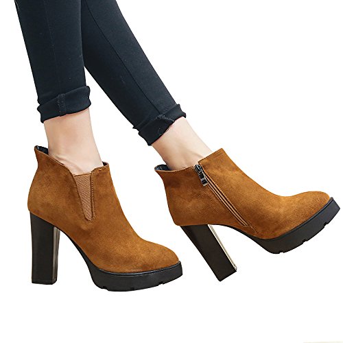 (Verocara)/Men's/Lace-Ups/DIRECT FROM USA/Verocara Women's Comfortable Sturdy Block Heel Zip High Heel Ankle Boots