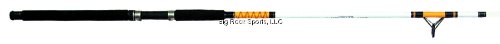 This reliable rod is perfect for any fisherman Lightweight and powerful graphite composite rod. Lustrous white blank has blue guide wraps over yellow undercoat with matching butt wrap. Special epoxy coating on the blank and wraps resist UV damage. Features aluminum oxide guides, graphite reel seat with stainless steel hoods, comfortable EVA slip free grips. 8 Foot 2 piece white rod.