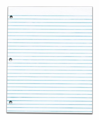 White 8.5 x 11 inch sheets with wide/legal rule