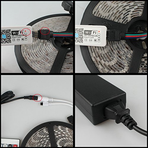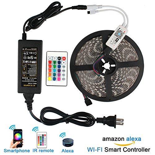 B2ocled-RGB LED Strip Light Kit Smart WiFi Wireless Led Lights 300 Leds 16.4ft 5050 Waterproof LED Lights ,DC 12V 2A Power Supply Adapter ,Working with Alexa,Android and IOS System