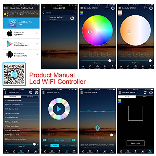- Two control methods: 1. IR remote 2. phone by Magic Home Pro App( Contains operating instructions)