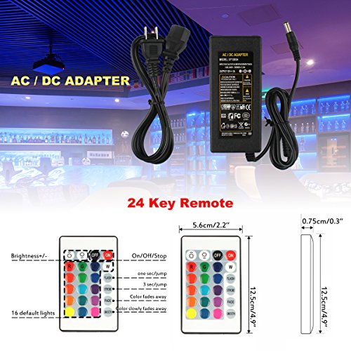 - Easy installation: all in one kit , comes with a UL approved adapter, a Wifi controller, a reel of 16.4ft 300 LEDs Non-waterproof rope light and a mini 24 key IR remote.