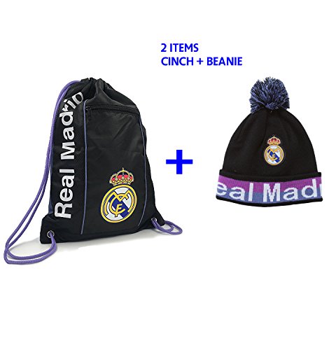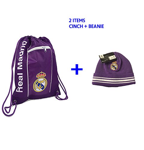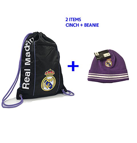 (Icon Sport)/Accessories/Luggage, Bags Travel/DIRECT FROM USA/Real Madrid Gym Sack Bag Drawstring Backpack Cinch Bag Beanie Set 2 Items
