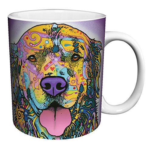 -. Title : Dean Russo Happy Dog Close Up Modern Animal Art Porcelain Gift Coffee (Tea, Cocoa) 11 Oz. Mug