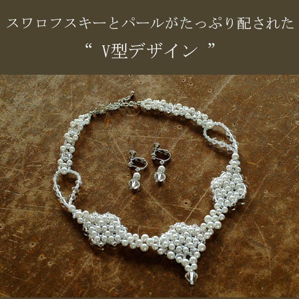スワロフスキーとパールがたっぷり配されたV型デザイン。