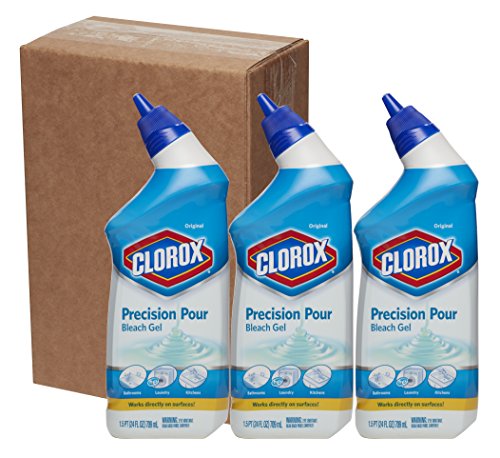 Studio : Clorox Publisher : Clorox Product Description Clorox Multipurpose Precision Pour Bleach Gel, Original, cleans and whitens tough stains and household surfaces with accuracy and less mess. The thicker formula and precision pour spout make it easy to control where the bleach gel is being placed without any splash or mess. No more ruined clothes from unintentional bleach drops. This sodium hypochlorite bleach can be used in both standard and high efficiency washing machines. Clorox Multipurpose Precision Pour Bleach Gel targets stains with precision pour, so you can put your bleach exactly where you want it. 0
