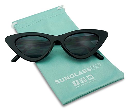 SunglassUP Super Retro Vintage Exaggerated Slim Netural Color Frame Cat Eye Sunglasses