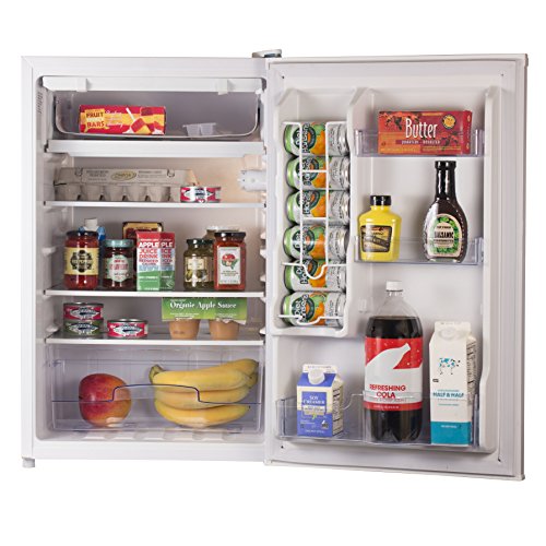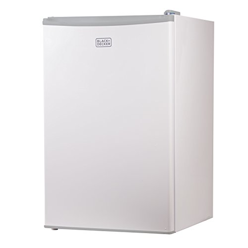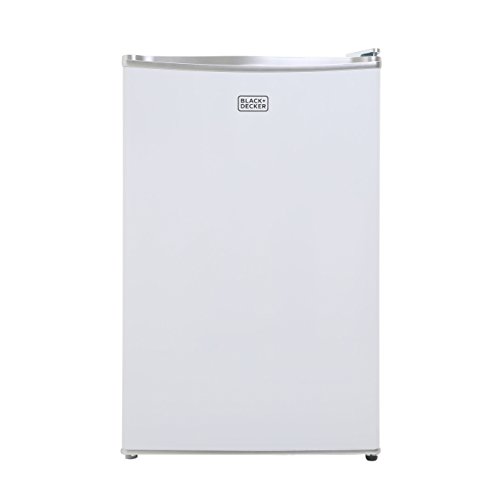 This BLACK+DECKER Energy Star certified compact refrigerator was perfectly designed for all small places; college dorm room, office, bedroom, workshop or anywhere you may need a compact refrigerator to keep your beverages and food cold. Similar to a regular refrigerator it comes with a full width freezer compartment with ice cube tray, a full width crisper with cover, recessed door handle, manual defrost and adjustable thermostat control. Easily accommodates 2 liter and other tall bottles.Feature