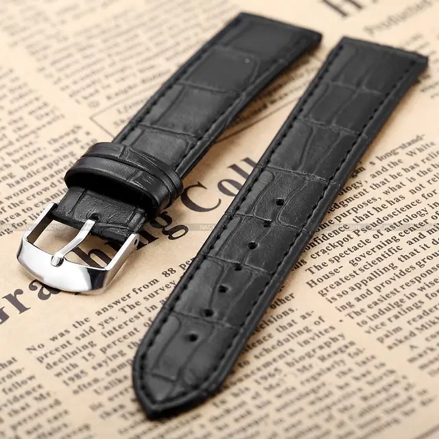 | [해외] 새로운 22mm 검은 원래 정품 가죽 스트랩의 실버 스테인레스 스틸 버클이 남자 손목 시계 밴드/ wb2213 |