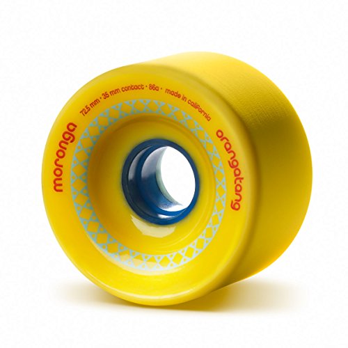 Studio : Orangatang Publisher : Orangatang Product Description There comes a time in every skater's life when the light and airy appetizers just don't satisfy -- when the magnitude of their downhill culinary endeavors breaks out of its shell and demands a protein source that is heartier, chunkier, and more gnar-filled...perhaps even coagulatory in character. Featuring stiff and beefy lips, the Moronga offers smooth slides, reliable traction, and excellent wear characteristics for the discerning downhill freerider. With a 72.5mm centerset and symmetrical shape, the Moronga is poured in our delectable Euphorethane formula for exceptional durability and a bloody long slide. The stone-ground contact patch ensures buttery-smooth slides right out of the box. Purchase price includes set of 4 wheels. 0