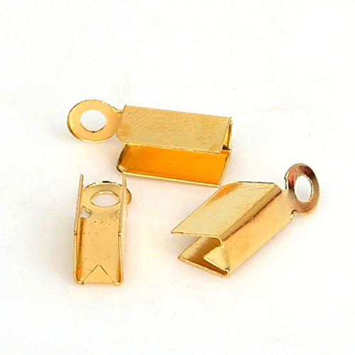 500pc Gold Fold Over Crimp End Cap Pieces- Jewelry Connectors With Loop- 3.5mm