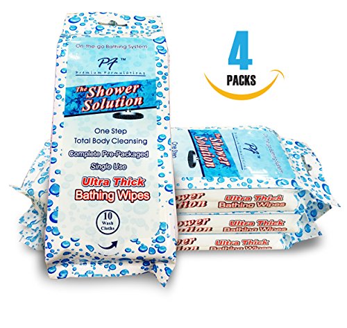 -. Binding : Health and Beauty -. Brand : Premium Formulations -. EAN : 0812898012528 -. Feature : You will receive (4) packs containing (10) shower solutions one step total body cleansing extra large bathing wipes / Extra large (larger wipes than national brands) to manage any size chore anytime / Warms easily in a microwave or warmer for increased comfort / Premium formulation enriched with aloe vera moisturizer to maintain your personal health and hygiene and get a fresh feeling and clean smell / No water or rinsing needed -. IsAdultProduct : 0 -. Label : Premium Formulations -. LegalDisclaimer : SELLER AND DISTRIBUTOR NOT LIABLE FOR CONSEQUENTIAL , DIRECT, OR INDIRECT DAMAGES OR LIABILITY . -. Manufacturer : Premium Formulations -. Model : PFbathing4pack -. MPN : PFbathing4pack -. PackageQuantity : 40 -. PartNumber : PFbathing4pack -. ProductGroup : Health and Beauty -. ProductTypeName : HEALTH_PERSONAL_CARE -. Publisher : Premium Formulations -. Studio : Premium Formulations -. Title : Premium Formulations Shower Solutions Bathing Wipes, Extra Large and Extra Thick, 40 Wipes -. UPC : 812898012528