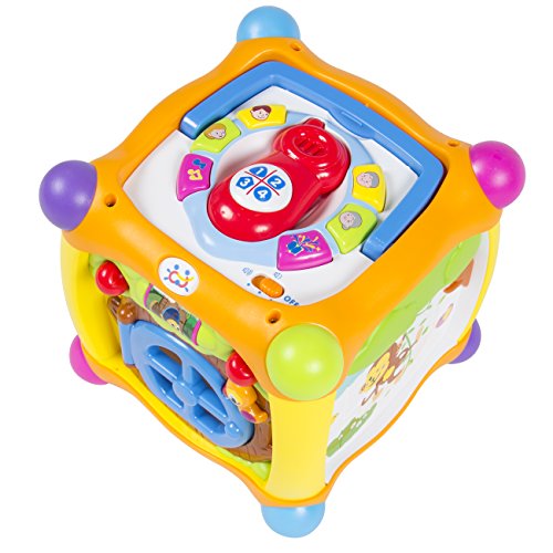 Studio : Best Choice Products Publisher : Best Choice Products Binding : Toy Product Description Best Choice Products is proud to present this new magic cube box toy. This toy has an immense amount of activities for a child to do allowing them to expand on their sensory motor skills, hand-eye coordination, and their memory. It comes with a handle to provide easy transportation, and nest to the handle are a set of buttons that speak to the child allowing the child to interact and further develop their social skills. On one face of the cube, there are shape holes in which a child can placed the appropriate shape in the hole and further learn colors, numbers, and ABC. There is also a memory puzzle in which a child tries to solve the picture of an adorable little monkey. On the bottom of the cube there is also a button that shakes around pearly beads. This fun magic cube provides 360° of entertainment allowing a child to be interactive on every area of the cube and making learning fun. We purchase our products directly from the manufacturer, so you know you're getting the best prices available. NEW PRODUCT WITH FACTORY PACKAGING. FEATURES: A 360° activity learning cube, Varity of games, making learning fun: monkey jigsaw, Embed shape blocks , colors, letters, numbers, and fruits, Press animal buttons to hear sound effect, Many more features that start up different sounds and colorful lights. SPECIFICATIONS: Product Dimensions:7.5"x7.5 x7.5", Weight:1.2 lbs, Color: multi color. PLEASE NOTE: Our digital images are as accurate as possible. However, different monitors may cause colors to vary slightly. Some of our items are handcrafted and/or hand finished. Color can vary and slight imperfections in the metal work are normal and considered evidence of the hand-finishing process, which adds character and authenticity to those items. 0